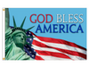 Express your love of America with this "God Bless America" flag featuring the Statue of Liberty and the U.S. flag images. Printed with our proprietary deep-penetrating acid dye inks for vibrant, long-lasting color. Flags are printed single-face reverse on high quality 200 denier nylon fabric. Flags are hemmed and finished with heading and 2 brass grommets. Indoor our outdoor use. Made in the U.S.A.
