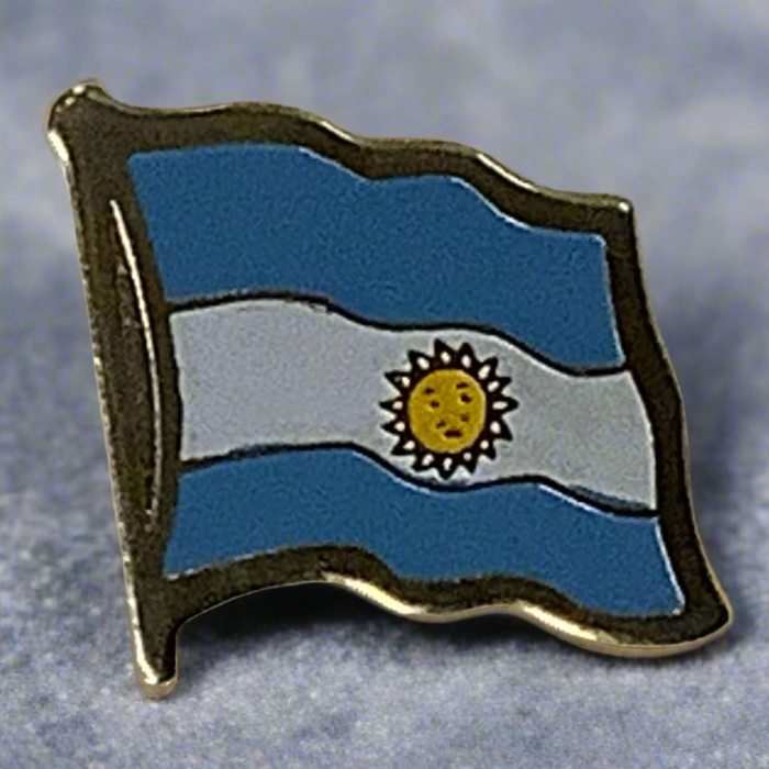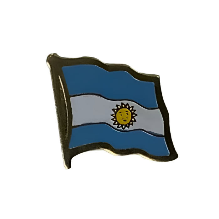 Metal Pin measures approximately 1" and comes with a backer to attach to a garment or hat. Features Argentina country Flag. Imported.