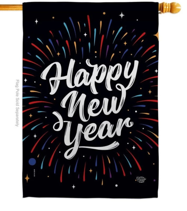 Happy New Year Fireworks Banner Flag